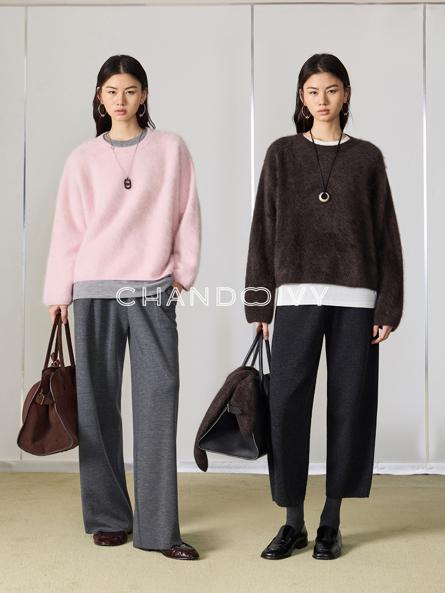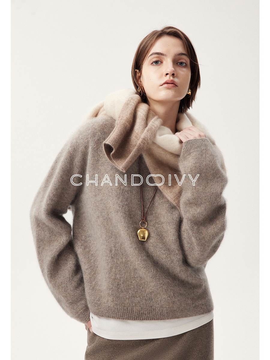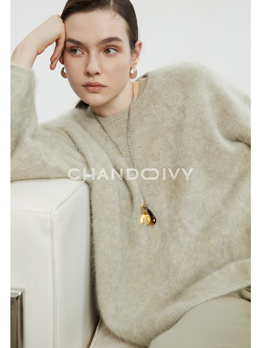 口碑升级定纺水洗拉绒白羊绒茸茸柔感大小廓型圆领毛衣