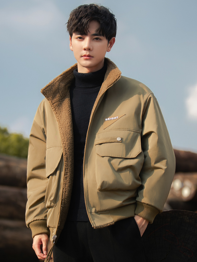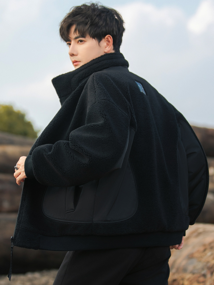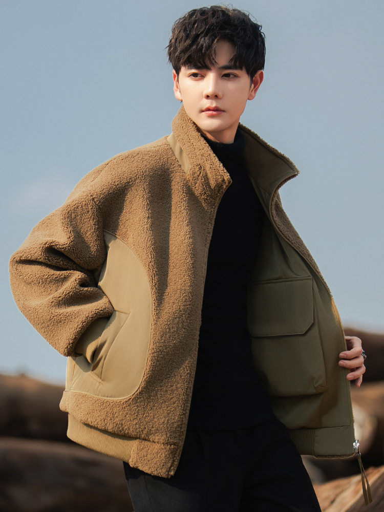 两面穿羊羔绒外套男秋冬季2024新款夹克颗摇粒绒皮毛一体男款加厚