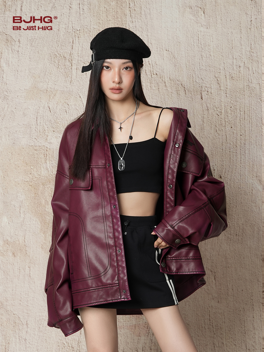 不计后果美拉德复古水洗皮衣外套男秋冬款情侣装加绒棉服外套