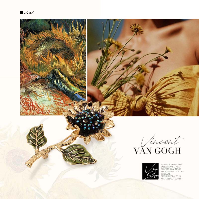 梵高向日葵原创手工钉珠水晶胸针别针高档胸花西装外套配饰